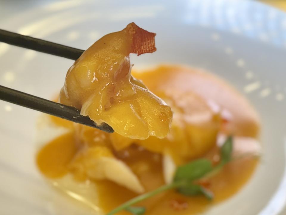 辣度比紅油更加強勁,鮑魚鮮甜Q彈、肉質細嫩,吸盡了辣酒及昆布的滋味,更加誘人。