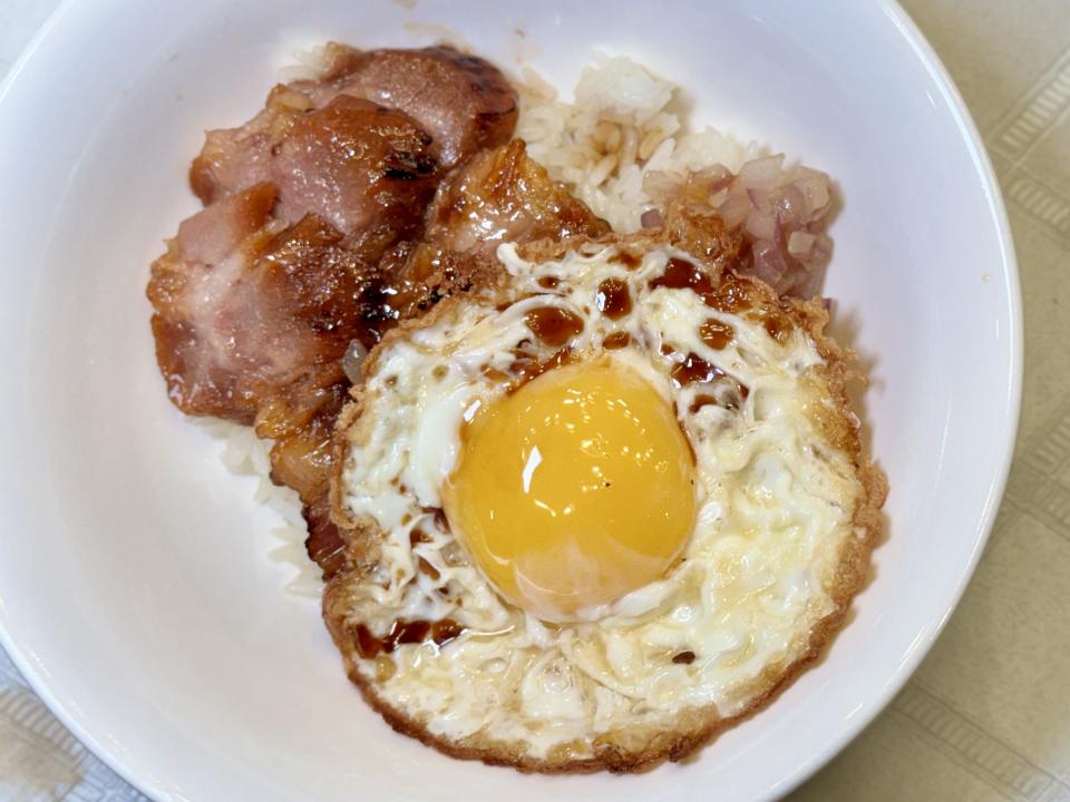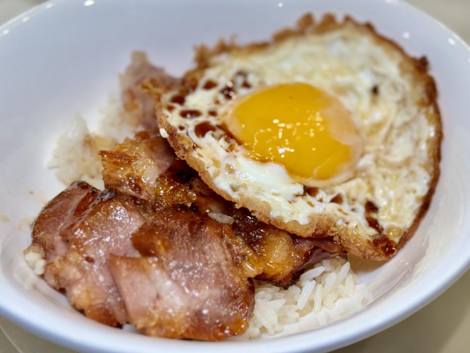 「逸.匠」雙蒜叉燒飯伴燶邊蛋,原本是A5和牛,但因我們部份人不吃牛肉,所以師傅改為食神電影中的黯然銷魂飯(即係叉燒煎蛋飯),大廚採用優質豬肉,肉質肥瘦均勻;蛋白煎得濃邊又香脆,而蛋黃還保留太陽蛋那種生熟程度,非常好吃,忍不住要把它吃個光光。