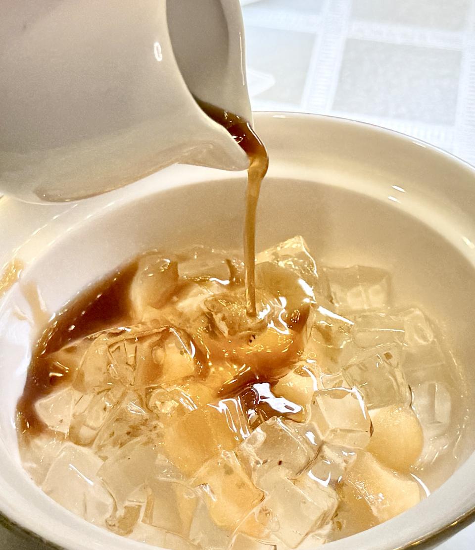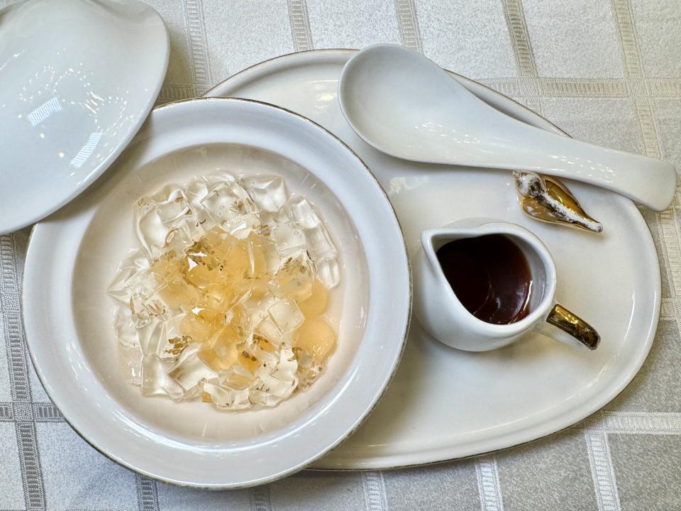 「逸.嚐」沖繩黑糖北海道赤肉蜜瓜冰粉,清甜爽彈的冰粉,晶瑩剔透,配上鮮甜的北海道赤肉蜜瓜,非常惹味;吃完也為今晚畫上完美的句號。