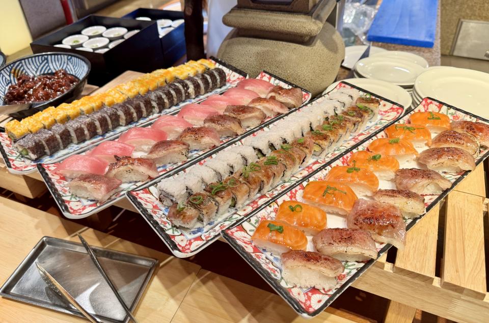 壽司方面則能品嚐到中華沙律、八爪魚及各式壽司卷物,和牛壽司可能係最吸引大衆的目光。