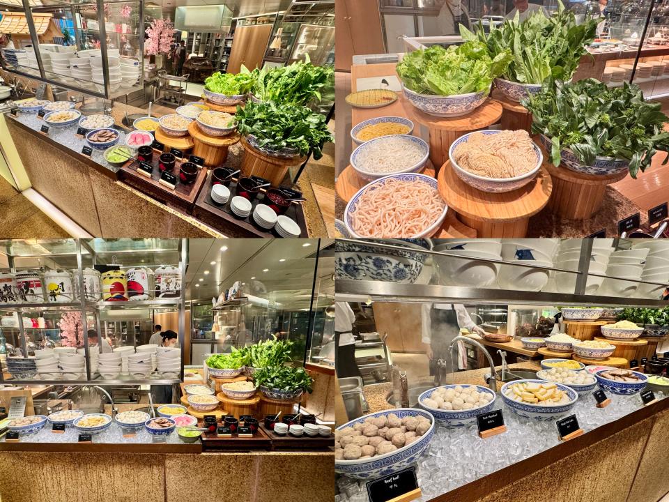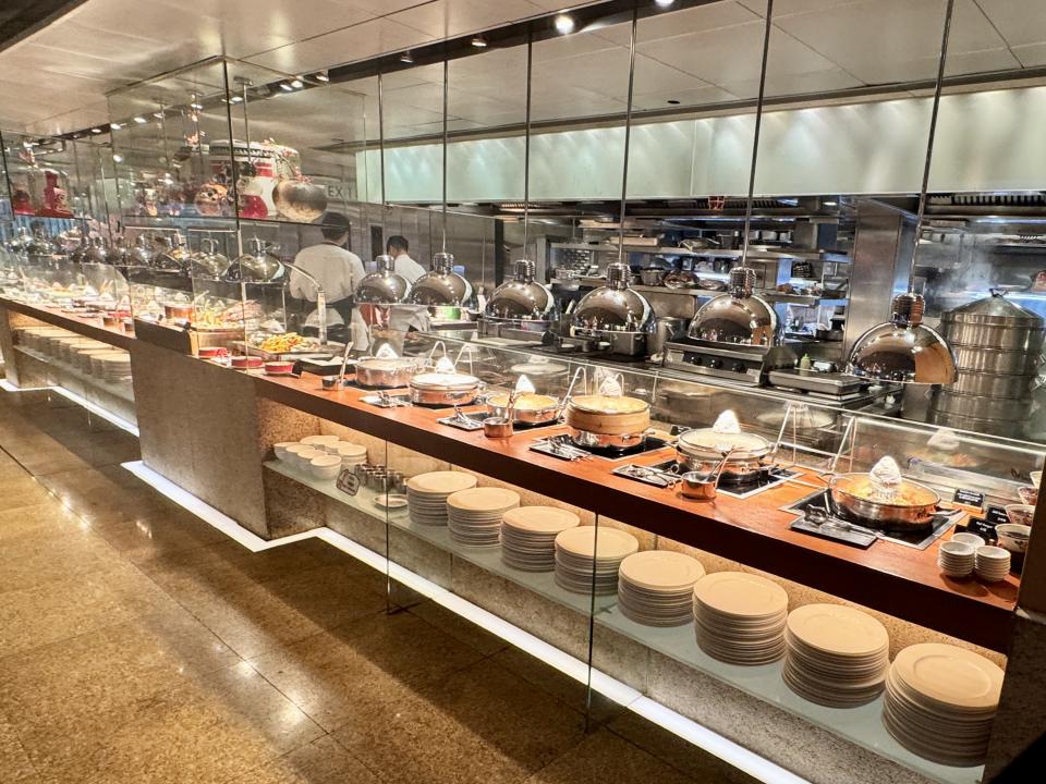 今晚中式熱葷也有多款選擇,包括XO海鮮炆伊麵、椰汁香芋雞煲、蝦餃、燒賣、咖喱魚、板栗海參煲、清補涼、豉油雞、蜜汁叉燒、燒鵝、三鮮炒芥蘭、清酒煮蜆、粟米豆腐海皇羹、雞油花雕焗海鱸及避風塘龍蝦鉗等。