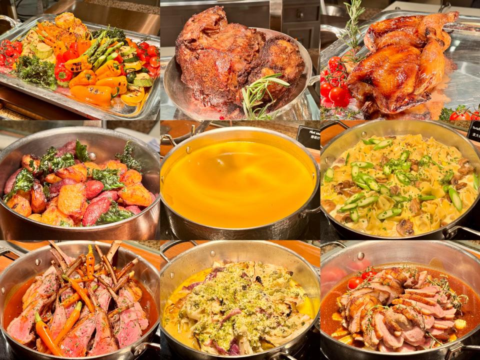 西式美食也有不少選擇,分別有燒雞、烤牛肋骨、烤雜菜、忌廉甘筍湯、意大利雲吞、烤羊架、燒椰菜及香煎鴨胸。
