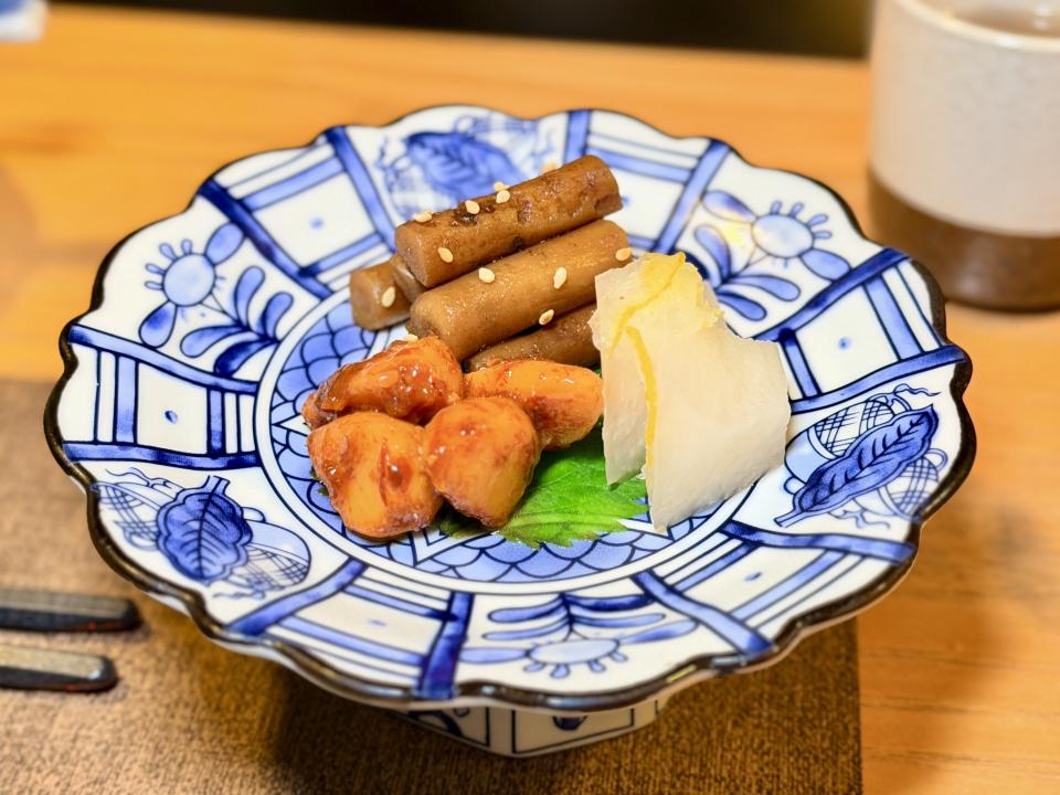 最後的「炒野菜及味噌汁」是一組非常經典的搭配:一清爽、一溫潤,互相平衡。炒野菜提供爽脆的纖維感,味噌汁則帶來溫暖的湯汁,兩者結合既健康又滿足,超好食。