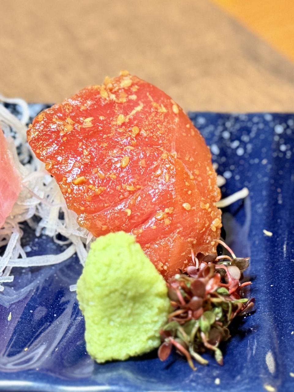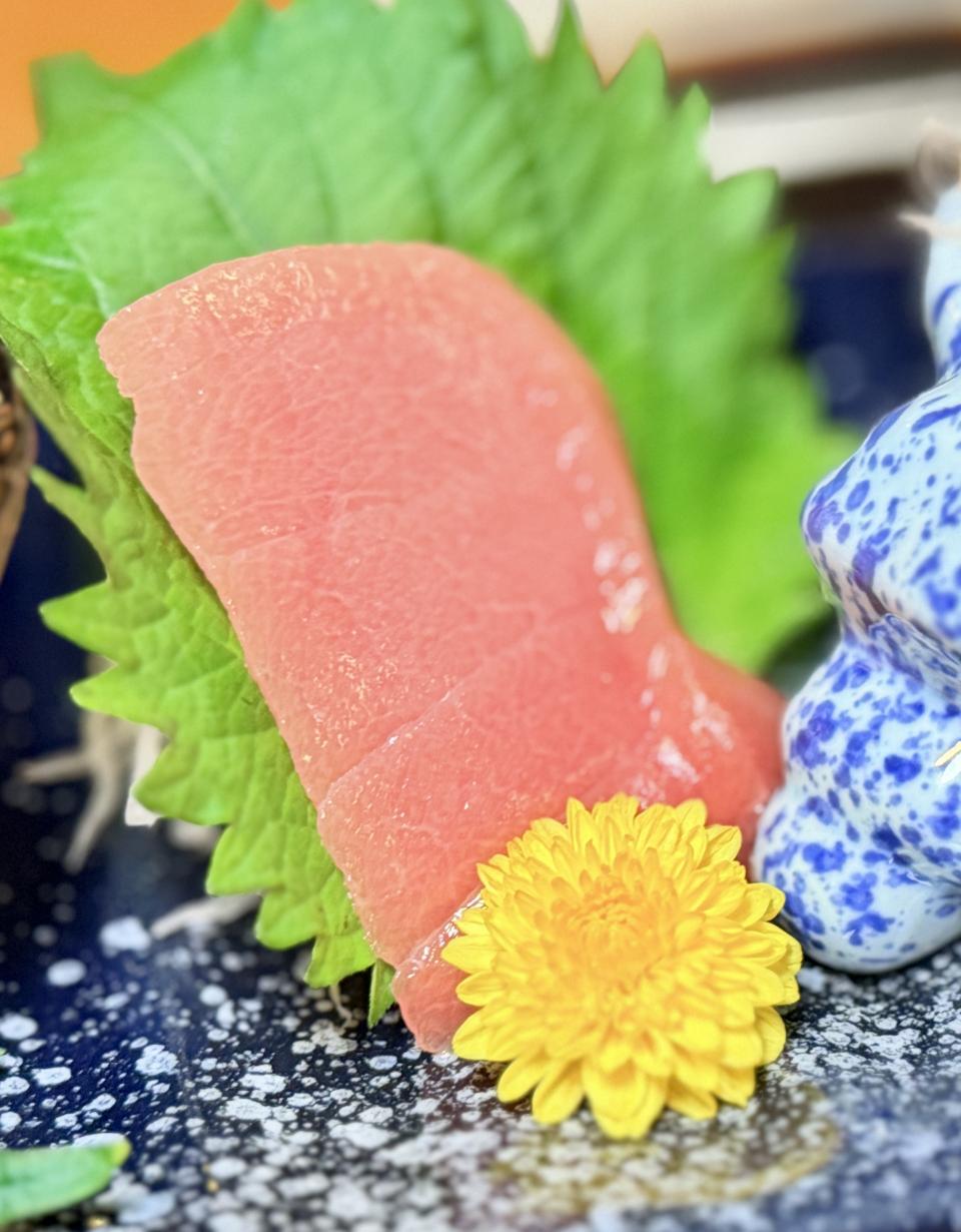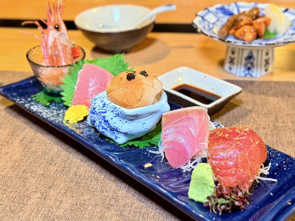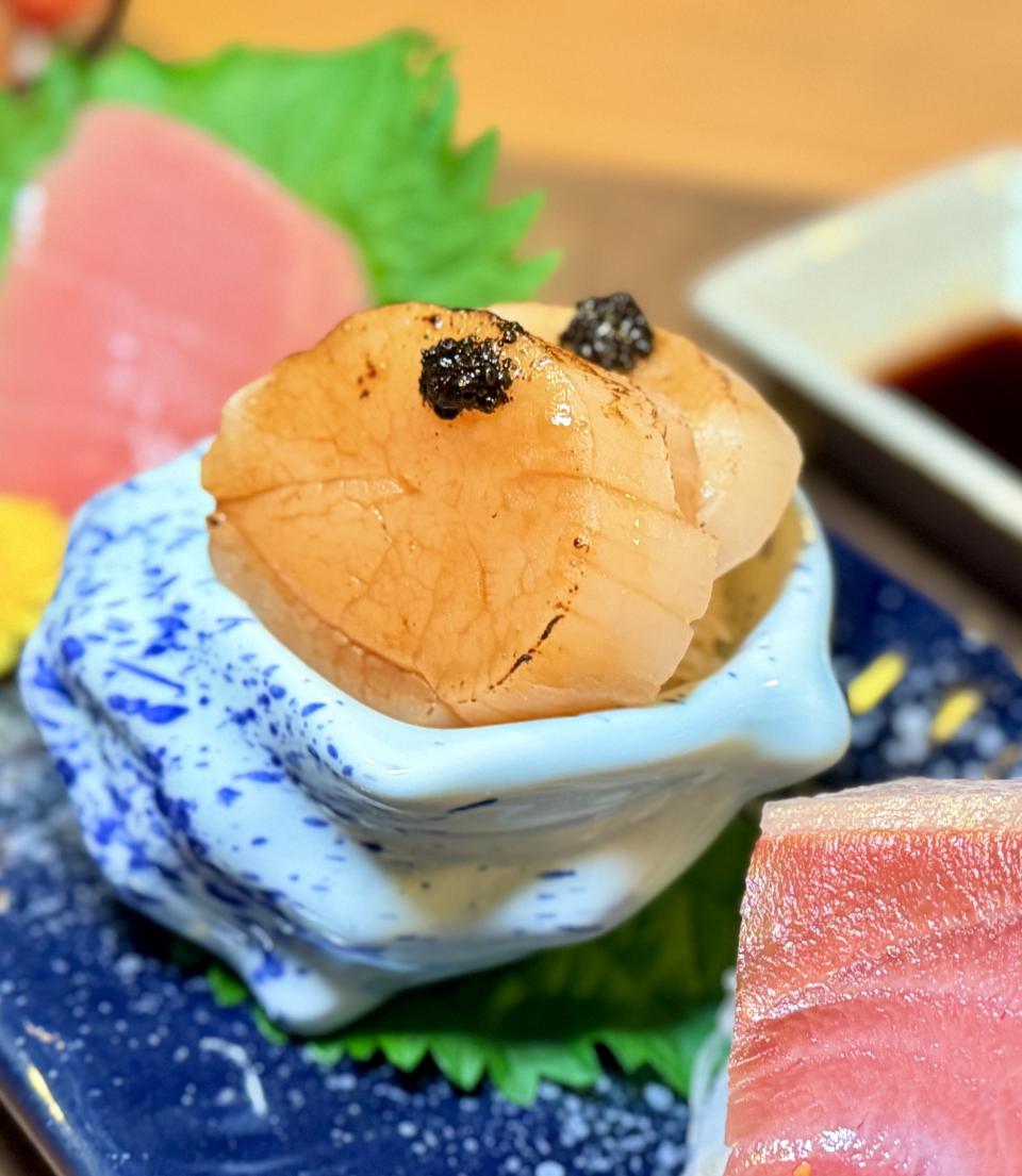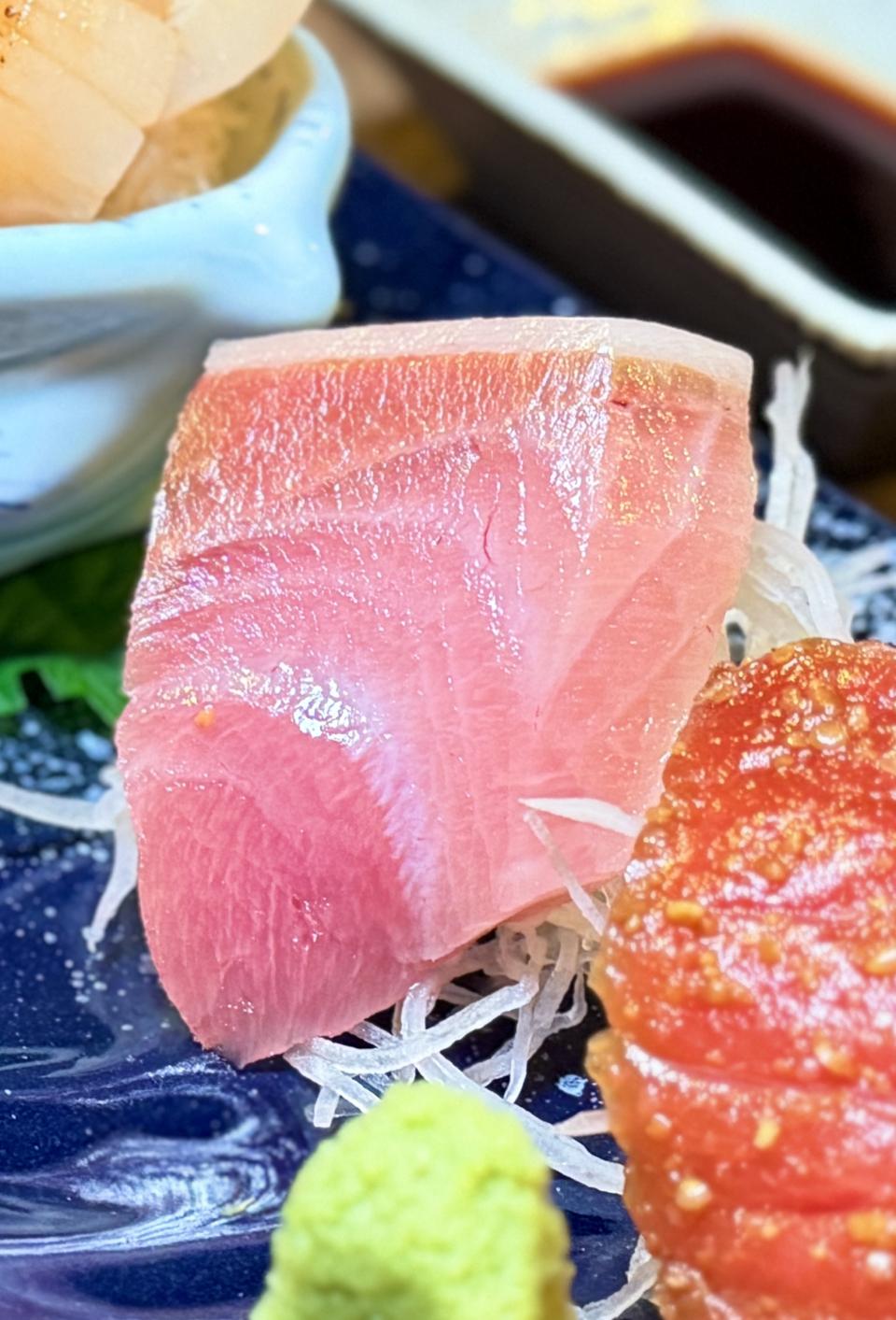 接著上場的是「金目鯛刺身及日本室津生蠔」,金目鯛刺身是細膩鮮甜的代表,室津生蠔則是濃郁鮮美的極致。兩者同場,形成「清爽 × 醇厚」的對比,既能享受魚肉的優雅,又能體驗生蠔的豪邁,正。