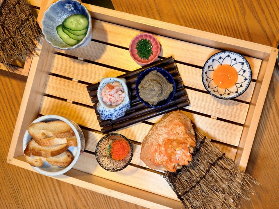 友人約到沙田帝都酒店內的櫻田餐廳晚膳,想起也有一段日子沒有來過了;看過餐牌,選了門口推介的「北海道A5和牛·蟹御膳(二人前)」。