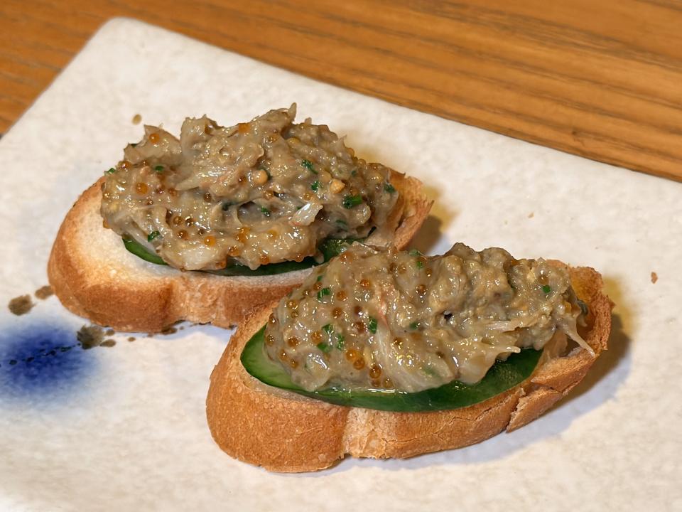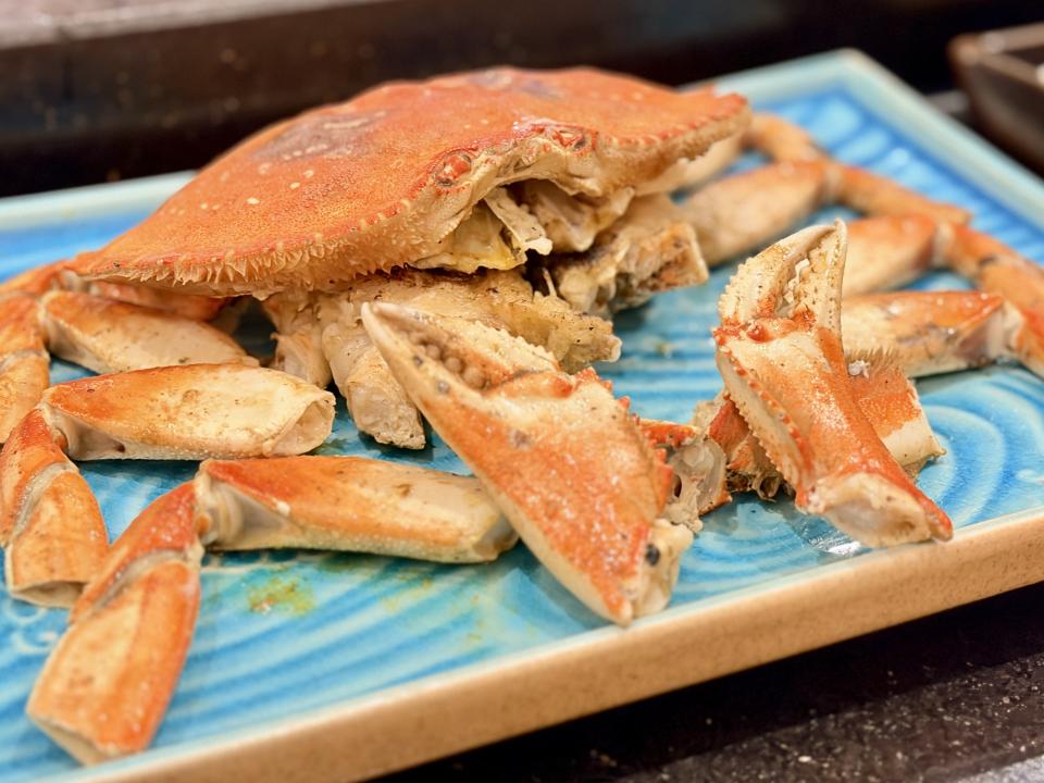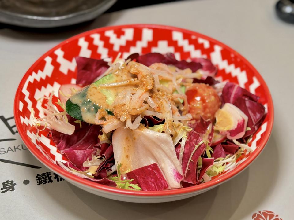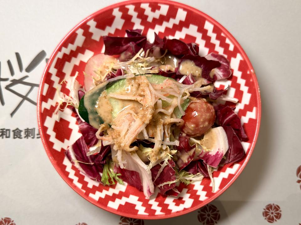 首先上場的「松葉蟹肉沙律」,這道沙律以松葉蟹肉為主角,搭配清爽蔬菜與簡單調味,作為清清味蕾的前菜,也很不錯。