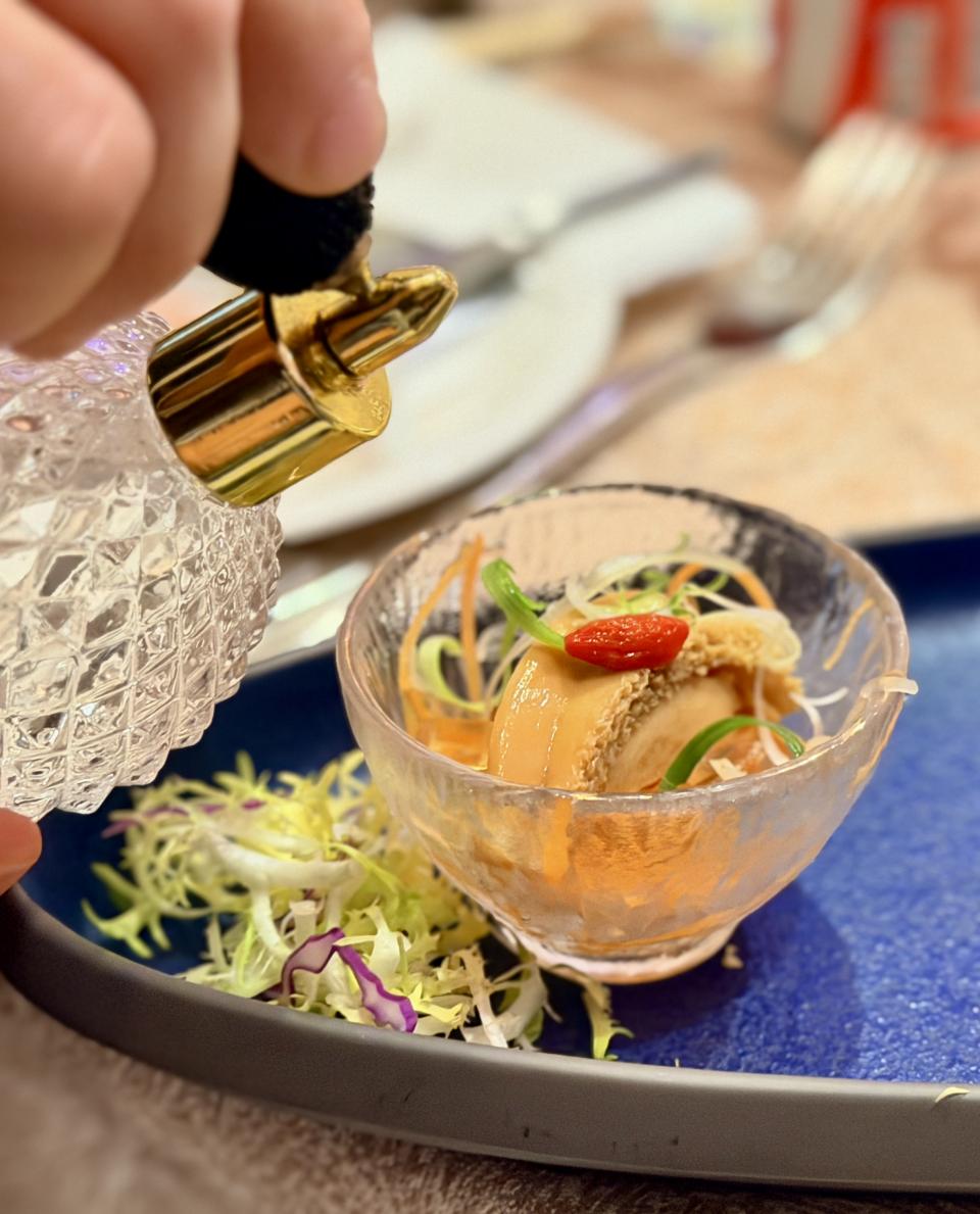 🧡 醬香大麴溏心鮑:用特製醬油加大麴酒冰鎮,味道鹹中帶甜,鮑魚又軟又入味,好滑好香~