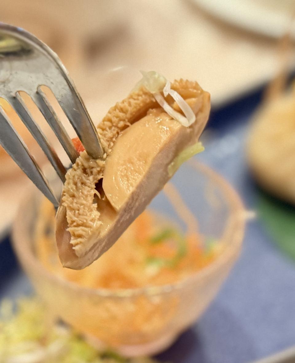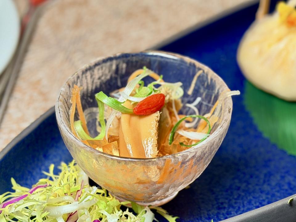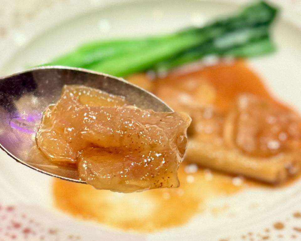 呢味「蝦籽魚唇軟骨伴鮮鹿茸菌」真係好有驚喜!魚唇軟骨用慢火拉油煮法,保留晒啲膠質,外脆內嫩,口感超正~再加薑蔥、冰糖慢慢燉,啖啖都係濃郁醬香同滑溜膠質,食落好滋味!仲有用鮑魚汁煎香嘅鹿茸菌,香氣十足,再點綴蝦籽,鮮味爆棚,層次超豐富~秋天食呢道菜,真係又補又滿足!