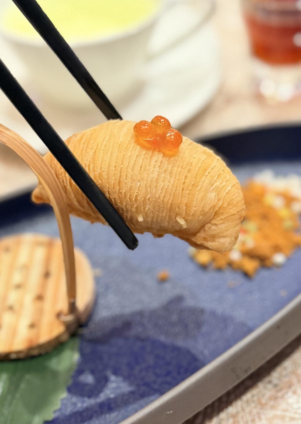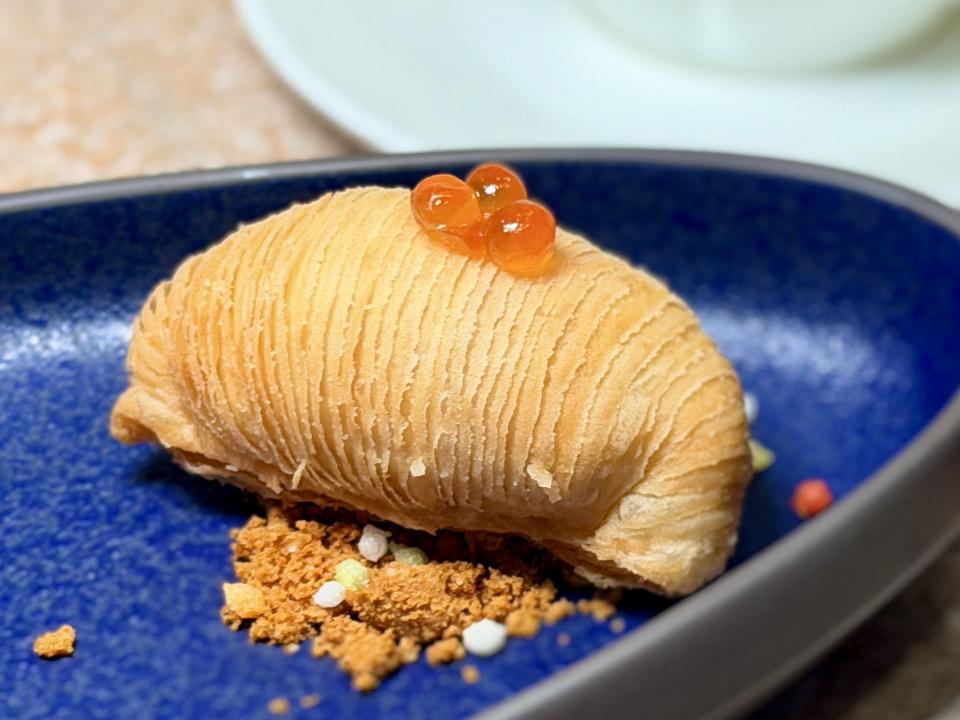首先上場的這道「藝粹千絲酥」真係好有心思,一次過食到三款海鮮精選,啱晒鍾意海鮮嘅你!