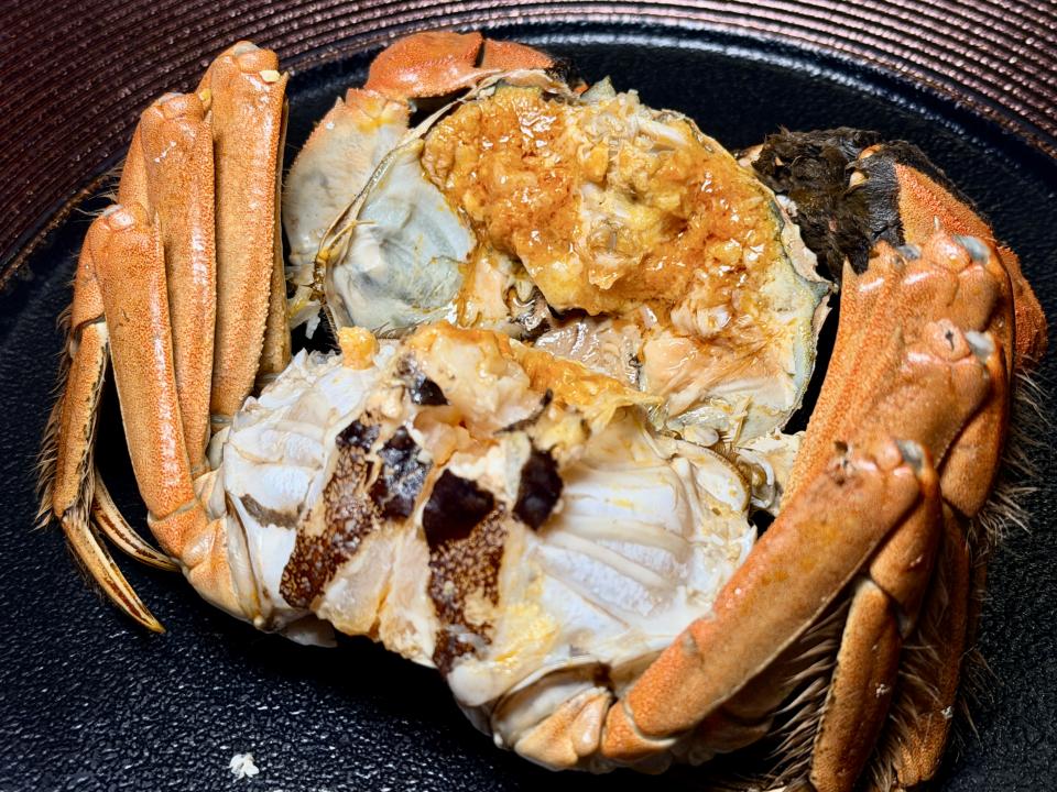 正值菊黃蟹肥的季節,怎能錯過清蒸江蘇大閘蟹?選用肥美公蟹,以傳統清蒸技法慢火烹調,讓熱力細膩滲透,完美保留蟹膏的濃郁油香與蟹肉的鮮甜精華。蟹膏豐腴、味道甘美,入口即化,原汁原味盡現,讓賓客細意品嚐秋日最鮮的滋味,令人回味無窮。
