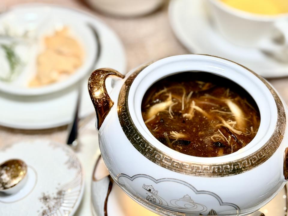 套餐可選菊花五蛇燴花膠 或 蟹肉花膠燴燕窩,而我選了蛇羹;而呢道「菊花五蛇燴花膠」真係好有功夫!主廚用蛇骨、竹蔗、茅根慢慢熬湯,香氣濃郁又暖胃~再加埋手撕蛇肉、花膠絲、木耳絲、果皮絲一齊燉,啖啖都係精華,味道醇厚又滋補!秋天食呢碗,唔止暖身,仲養顏補氣,食完成個人都精神晒!