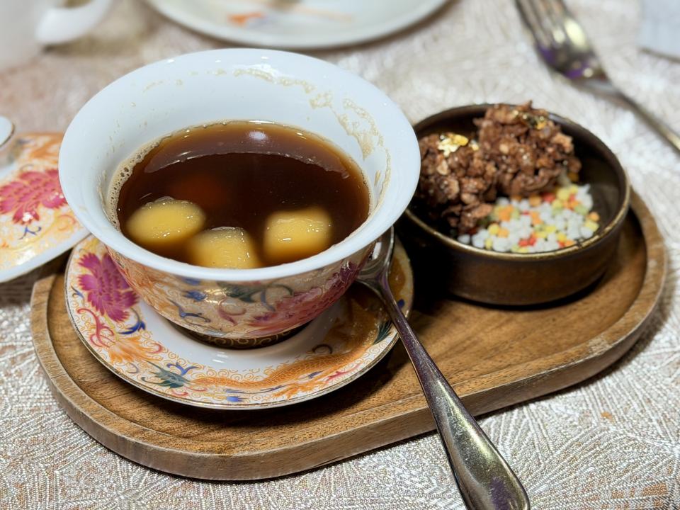 暖笠笠又好味的「薑茶金薯芋圓小丸子」,薑茶湯底有陣陣薑香,飲落暖身又舒服~入面有芋圓、番薯同小丸子,口感超豐富,每啖都係甜甜暖暖,好治癒!秋冬食一碗,真係由心暖到落胃,啱晒想搵啲窩心甜品嘅你!