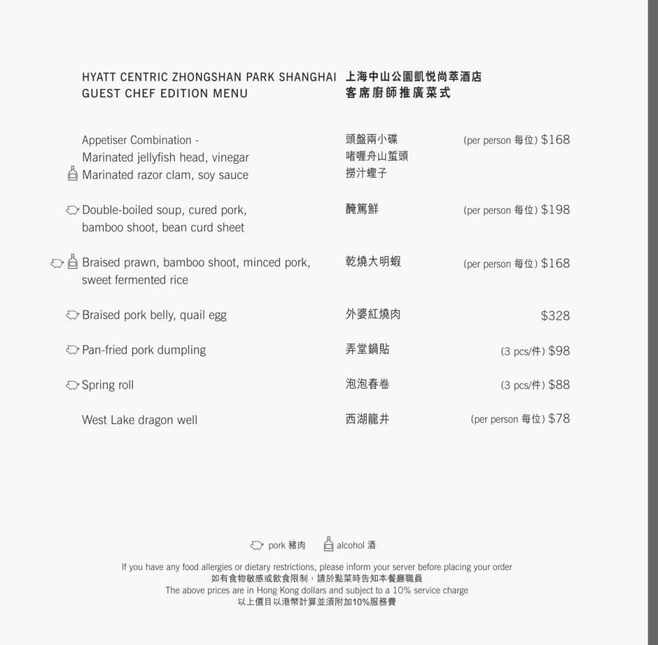 好友約食午餐,因知道上海中山公園凱悅尚萃酒店行政副總廚「劉志方師傅」來港,推出地道的滬菜(另稱上海菜),而單點菜式供應至12月31日止。