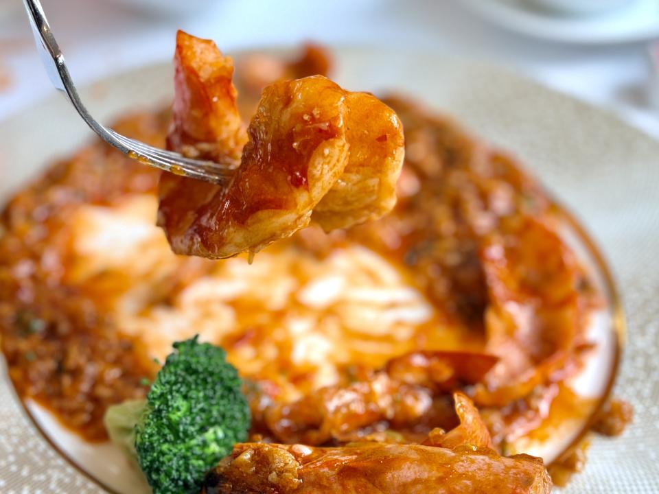 蝦肉爽口彈牙,食落鮮甜,並帶有由醬汁帶來的鹹香微辣與酸甜交織的風味;整體香濃,層次感豐富,如來一碗白飯,更是妙極。