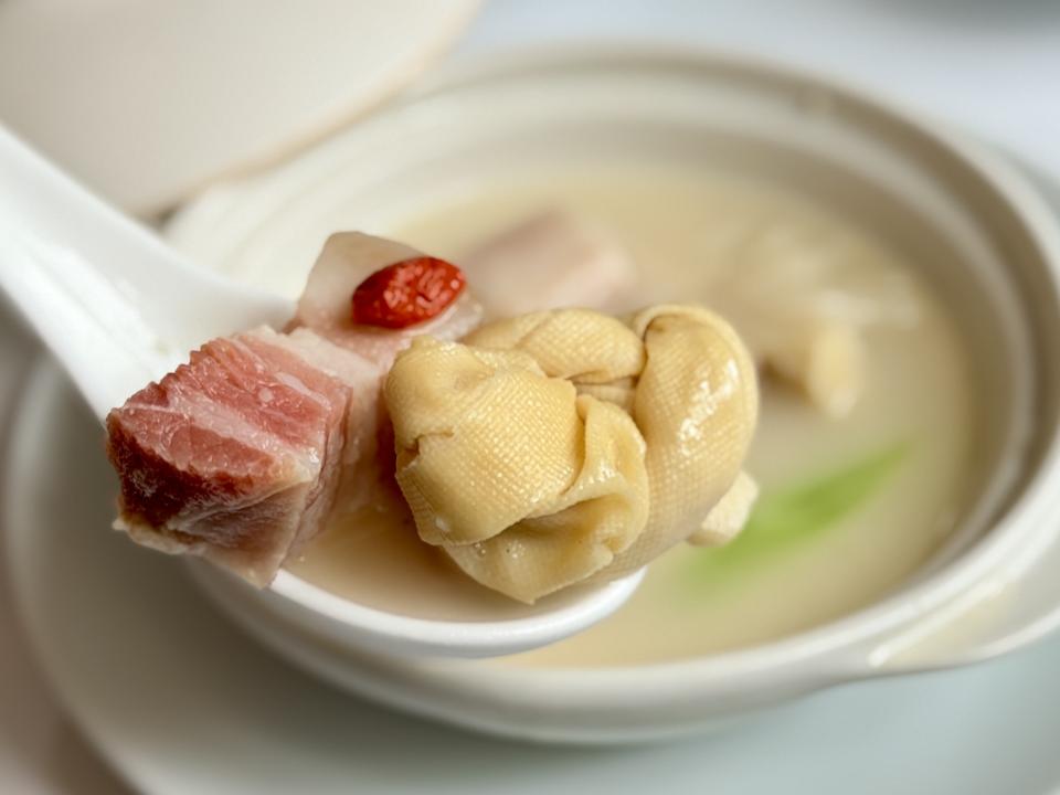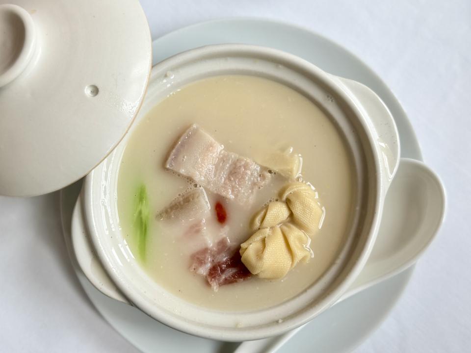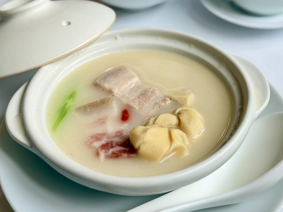 乳白且濃郁的湯汁,味道醇厚,同時帶有鹹鮮和蔬菜的清甜味,鹹肉軟糯酥爛,肉質鮮嫩,春筍則爽脆清甜,百頁結吸滿湯汁的精華,比肉更加香濃。