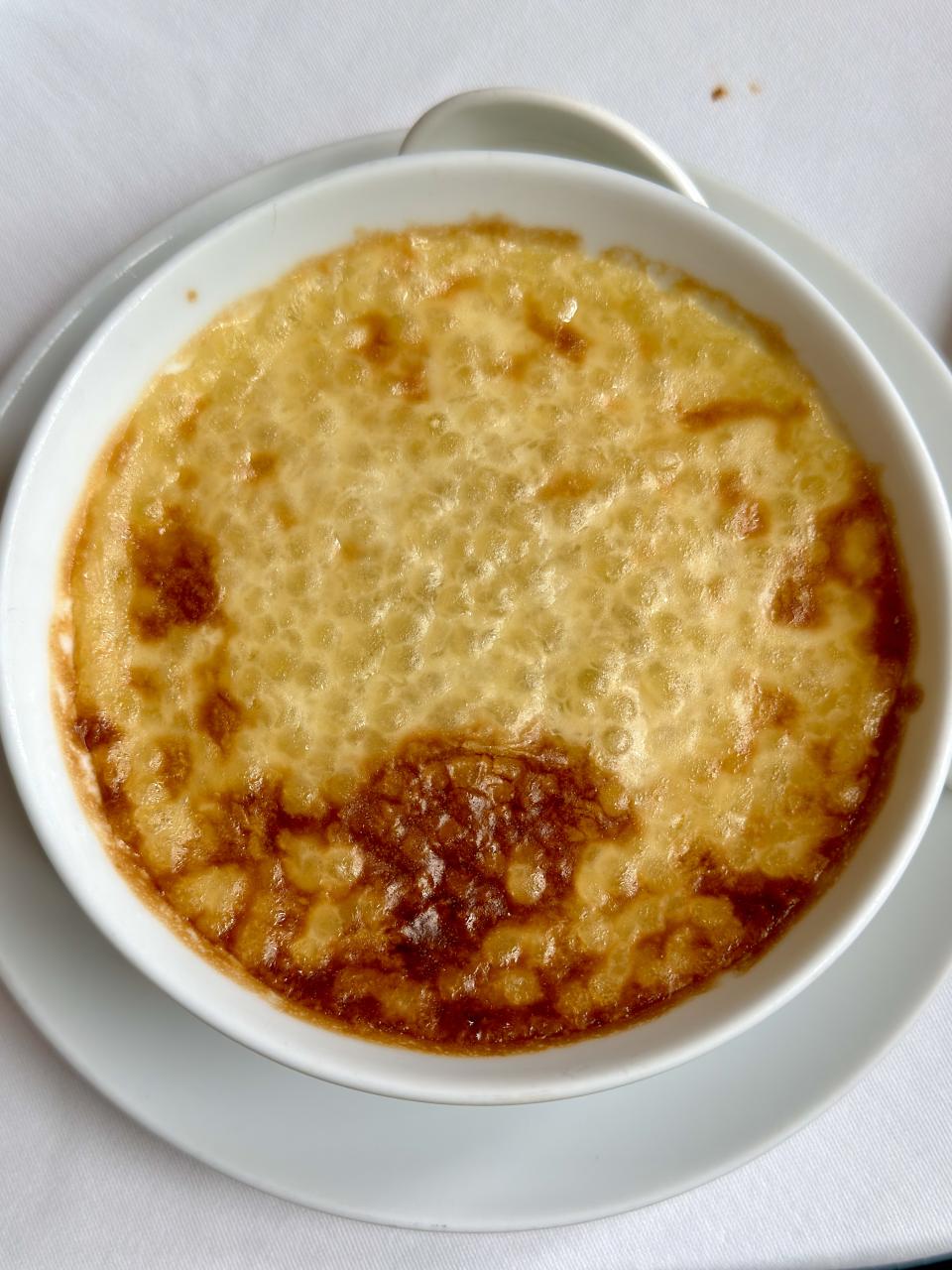 甜品選了軟糯又Q彈的「栗子蓉西米焗布甸」,甜度不算高,外層微脆、軟糯香滑的西米及香滑的栗子蓉則藏在中間,口感豐富又夠熱;酥皮流沙盞是這裏經典嘅甜品,又豈能放過。