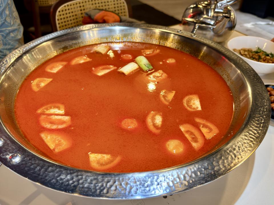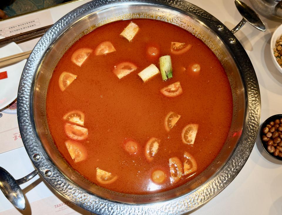 我哋揀咗番茄鍋底,酸酸甜甜好清爽,打邊爐啱晒~